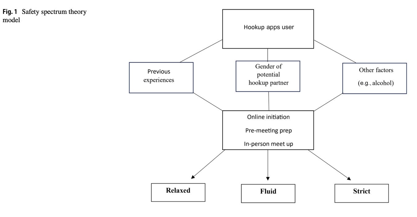 Babcock et al. (2024) How LGBTQ+ Young Adults Navigate Personal Risk in App-Based Hookups: The Safety Spectrum Theory Dating and hook up apps are a big part of queer culture. There are many apps, including, but not limited to Tinder, Hinge, Grindr, Bumble, Her, Scruff, and Sniffies. Each one has a different focus, whether it be open to everyone or specifically queer, looking for relationships or solely for quick hook ups. With stories of people praying on those they meet on the apps (e.g. here and here), it is important for queer people to have an understanding of safety issues which are associated with hookup and dating apps, especially young adults. In this article, Babcock looks at the safety planning young adults do when meeting people from the apps.